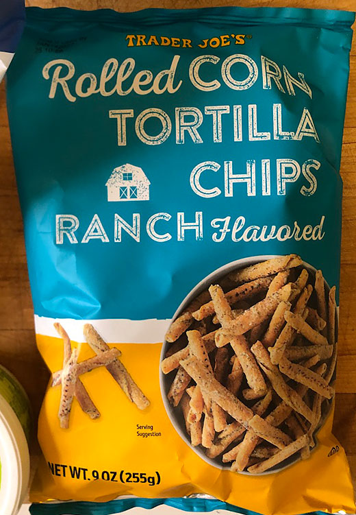 Here’s what Traders has to say: “After the runaway success of our Chili & Lime Flavored Rolled Corn Tortilla Chips, including their record-breakingly early entry into the Trader Joe’s Product Hall of Fame, we knew that they needed a companion within the snacks section. Where their Chile Lime cousins are tangy and hot, these Ranch Rolled Tortilla Chips are creamy, herby, and well-rounded. They get their bold, yet markedly mellow flavor via a suite of savory seasonings and spices, including buttermilk, garlic powder, onion powder, and parsley.”