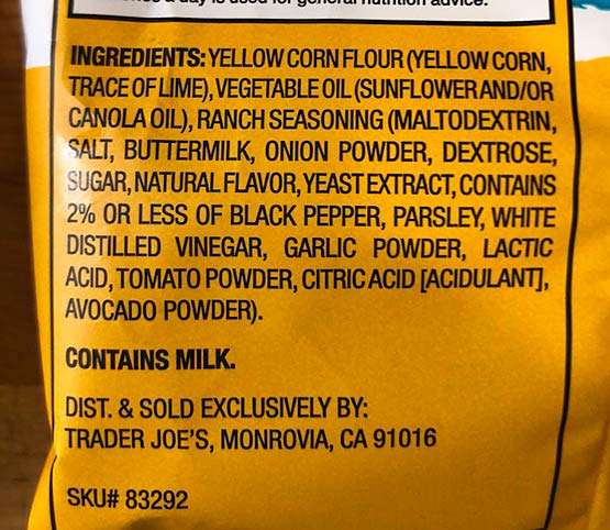 TJ’s gave this variation a buttermilk ranch flavor that includes dried onion, parsley and other seasoning.