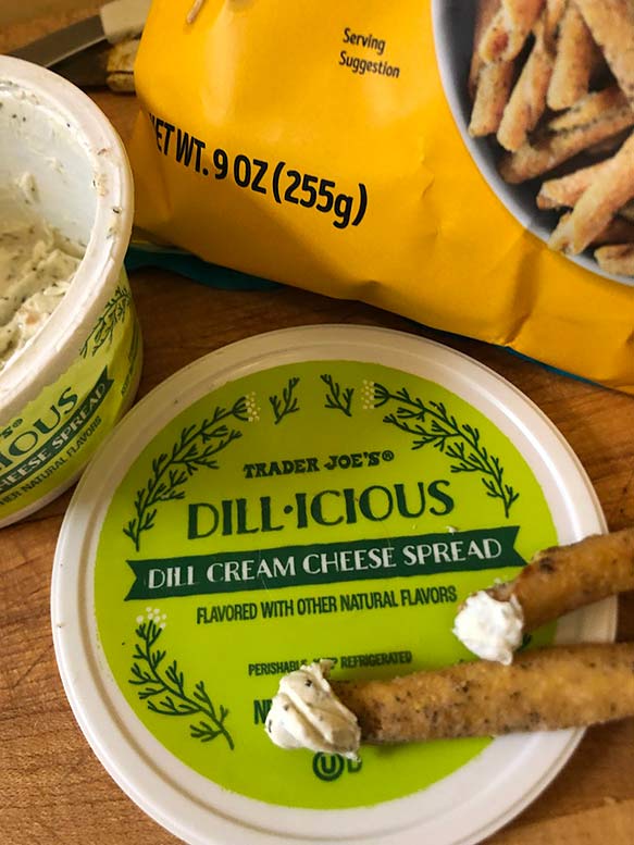 Trader Joe’s say it was designed to match with smoked fish. For sure! They suggest spreading it for a “shmear” on a bagel, then top with some smoked salmon, or smoked trout or what have you. Certainly this will be wonderful for matching with any kind of smoked fish.