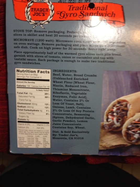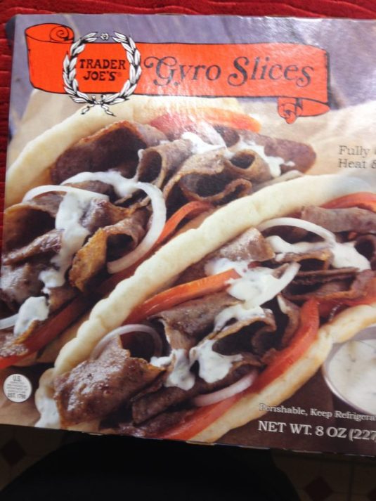 I actually liked Trader Joe’s Gyro slices I did add some seasonings I dropped the meat into hot cast iron for a couple of minutes heated up the pita made some garlic and yogurt sauce added some cucumbers and red peppers voila great sandwich the meat had an appealing color versus when you open the package which is probably the main downfall as we do eat with our eyes.