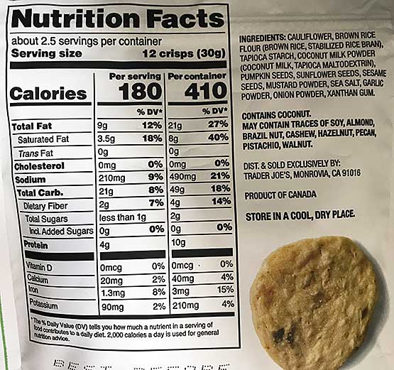 GLUTEN FREE CRACKERS / SNACKS. With Cauliflower, brown rice, coconut milk, seeds and seasonings