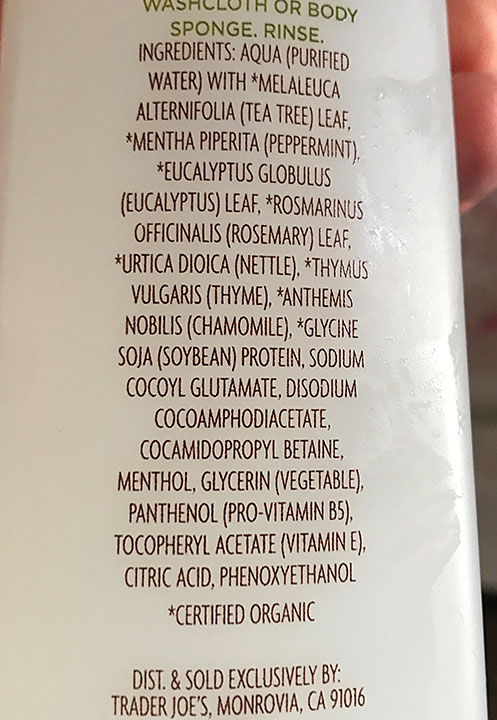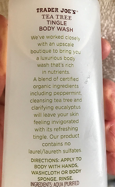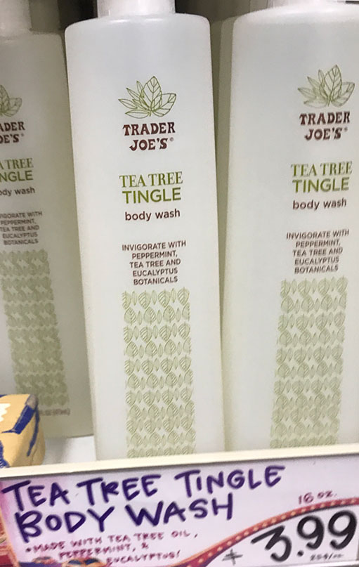 This body wash is a must have for hot weather! “Invigorates with Peppermint, Eucalyptus and Tea Tree botanicals….” It’s the perfect product especially right now for the heat wave that much of the U.S. has been experiencing (July 2022). TJ’s Tea Tree Tingle body wash has tea tree oil, peppermint, eucalyptus and other natural essential plant botanical oils, which make for a really refreshing and invigorating body wash for your shower. It smells terrific. It was so refreshing sponging up with this after a really hot summer day in NYC where the thermometer hit 95 today. This stuff was a lifesaver.