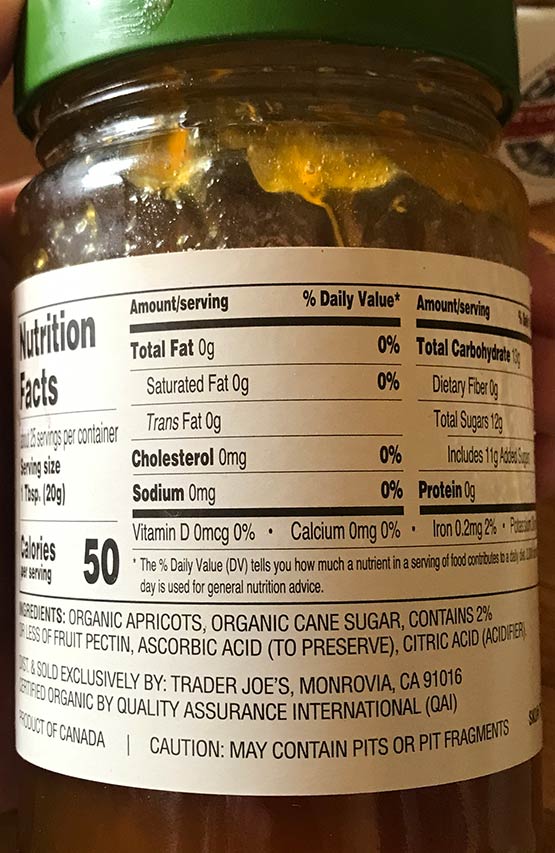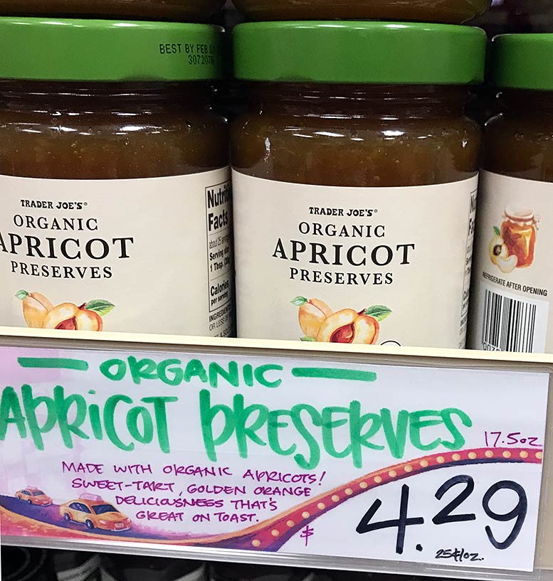 “Made with organic apricots! Sweet-tart, golden orange deliciousness that’s great on toast” – Trader Joe’s