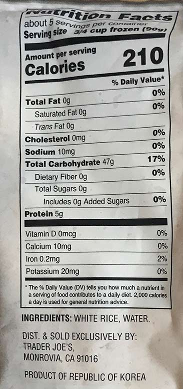 Here’s another new Korean/Asian item from Trader Joe’s. These rice cakes are flat oval disks made from sticky rice, so are very chewy and soft. These kind of rice cakes are a typical ingredient in many Asian cuisines, Chinese, Korean others. In Chinese cooking these rice cakes are known as “nian gao”. If you fry them, they get a little crispy, which is how I like them best and the way I would suggest you try to make them. The bag has just rice cakes (no sauce) so you will add your own stuff. You can use these to make a stir fried dish with vegetables and a protein. There is a basic stir fry recipe on the bag (“Stir Fried Rice Cakes with Vegetables” which you could expand upon with adding a protein (say chicken, shrimp, pork or baked tofu.) Tip: of course do add garlic which this recipe omits (?!) You could come up with a Korean stir fry variation by adding some Kimchi or Gochujang and pork or chicken. The other thing you can do with these is add them to a soup (like a Wonton and Chicken Soup) in which case, no need to fry them up. The rice cakes are $3.29 (16 oz). They’re are in the Asian frozen area. These are a “Product of Korea”. While not quite as good as ones I buy in say at H-Mart in a pinch these will do and easy to buy. VEGAN, GLUTEN FREE
