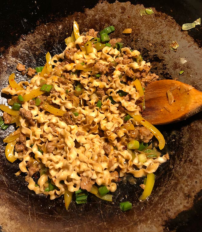 So my suggestion is do not even bother with the included (crappy) sauce packet. Its not good. “Soy and sesame” sauce? Ha! Just check the ingredients which reads as mostly chemicals. I say don’t use that cheap crappy “sauce”. ADD YOUR OWN SAUCE. Yes you heard me. To fix these up use the noodles plus your noodle! (again, the black package has a much better sauce!)