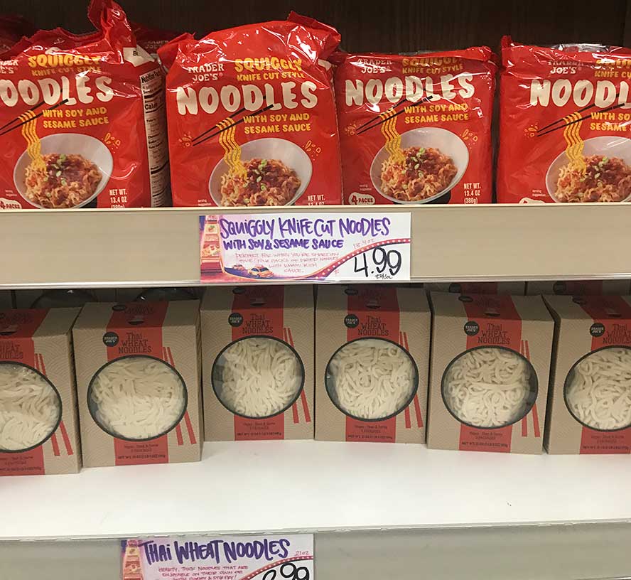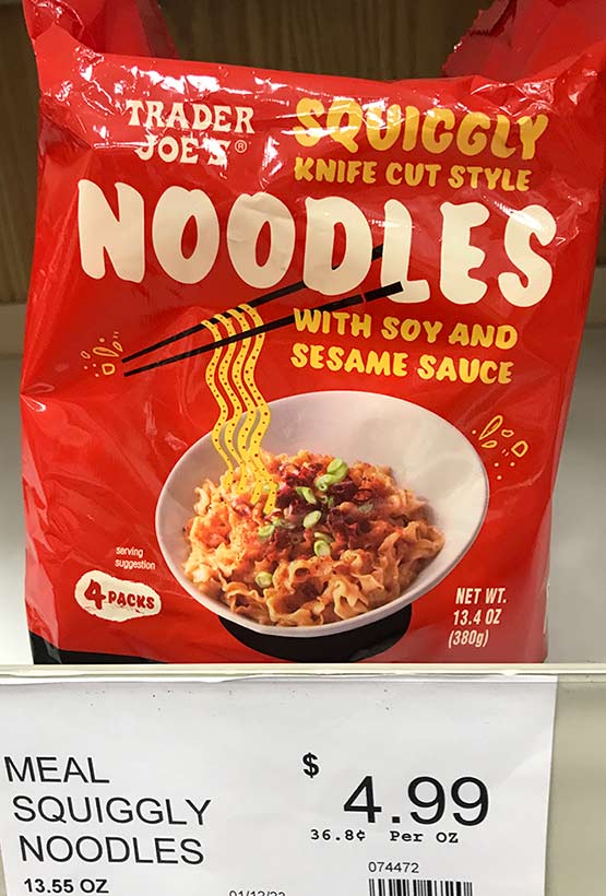 TJ’s “SQUIGGLY NOODLES” $4.99 (4 noodle packs). “Product of Taiwan”