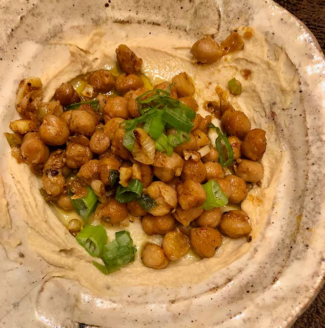 (Organic Hummus to which I added my own addition on top: chickpeas sautéed with onions and garlic)