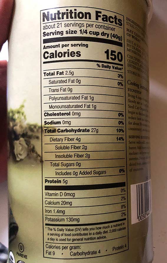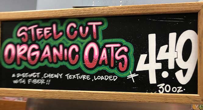 Here’s the item I might pick – ORGANIC STEEL CUT OATS. Whole grain. Super food.