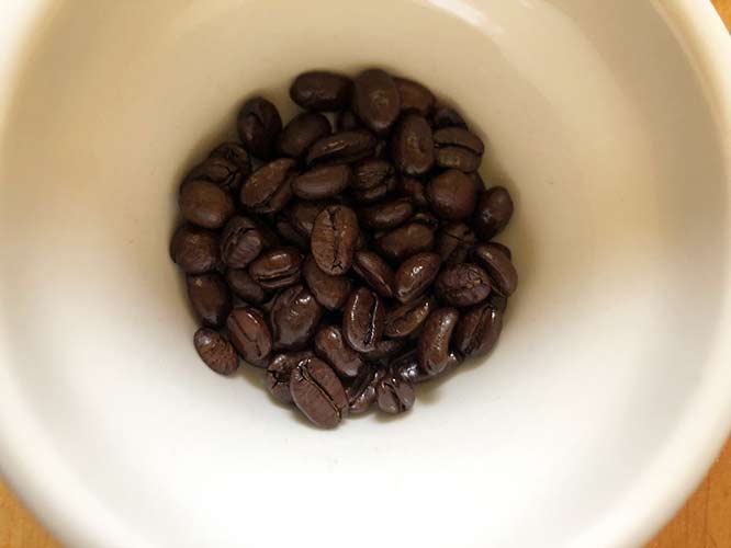 ROAST – You can never count on when TJ’s says Light or Medium. This bag says “Medium Roast”. However to me it’s a bit darker. I might say a dark medium or a light dark roast? As you can see the beans are just a tiny bit shiny. So I might say dark medium but not at all over roasted. Perfect for these beans.