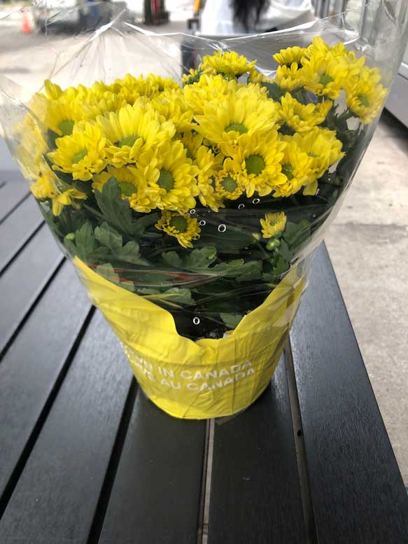 I got one of these lovely yellow live Mums live potten plant for my wife yesterday. They looked super healthy. These cost only five bucks, not a bad deal at all.