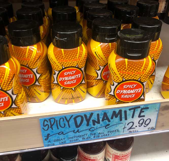 Here’s what they have to say about their new SPICY DYNAMITE Sauce: “Made with a base of vegan mayo, the ingredients to our Spicy Dynamite Sauce read like a list of greatest gastronomic hits: Pickled chili peppers! Sesame oil! Garlic! Horseradish-mustard paste! It all adds up to one superlatively full-flavored profile, with notes of heat, sweet, and umami, and a captivatingly creamy texture. We like it on and with everything , and we mean everything: French fries, chicken nuggets, poke bowls, grilled salmon, roasted broccoli, baked potatoes, burgers, sandwiches, fish tacos, scrambled eggs—seriously, you name it, and this Sauce will work like Dynamite.”