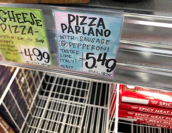 Apparently Trader Joe’s / Trader Giotto) Pizza Parlanno is said to be quite a customer and crew member favorite. The proof of which it’s been around for 15 years.