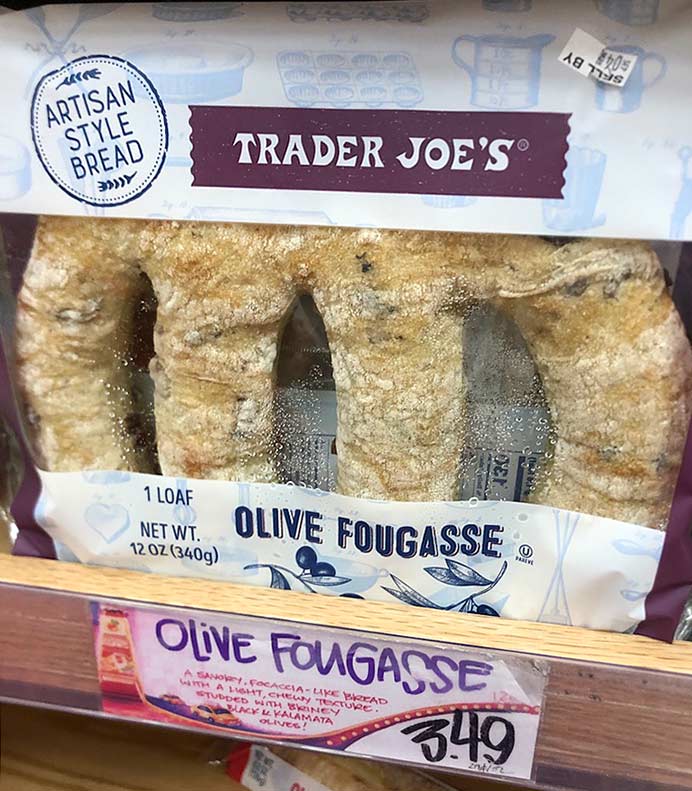 If you see a Fougasse in a bakery they would probably be selling them for 6-8 bucks. Trader Joe’s price is $3.49 (12 oz)
