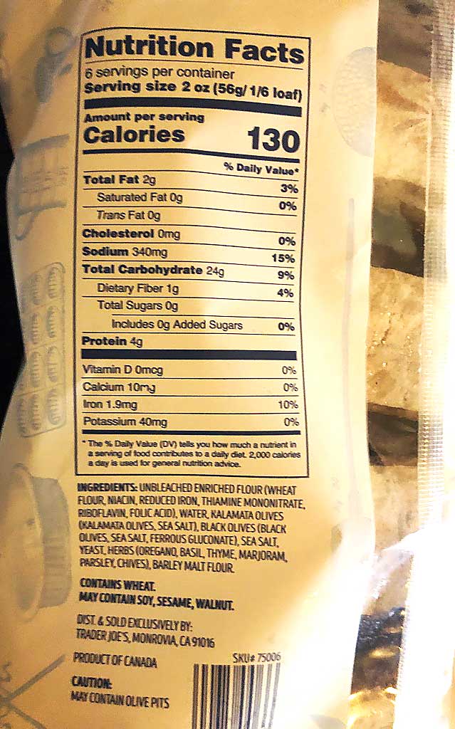 This bread is a bit unusual and one of Trader Joe’s more “gourmet” breads on offer. I think it’s worth trying especially if you are an olive fan.
