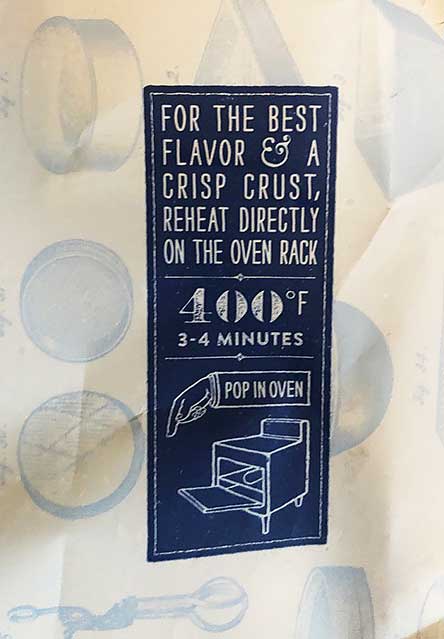 COOKING INSTRUCTIONS FROM FROZEN: Preheat oven to 425. Bake for 9-12 minutes until crust is LIGHTLY BROWNED