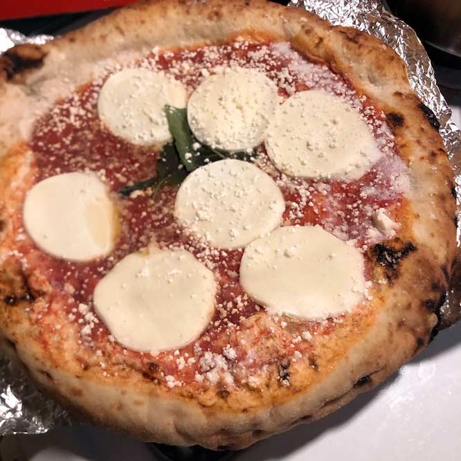 The good points with this pizza is first if you like Neapolitan style pizza, I would call this pretty “authentic” in that its in the nature of a pizza you might get in Naples rather than a “NY Style” pizza. , Meaning the kind of pizza that you may want to eat with a knife and fork as many Italians do (Neapolitan style, not Roman). The reason being the center of the pizza crust may be too thin to support ingredients to hold it up and eat as a slice, and the center may be a little soft and juicy.