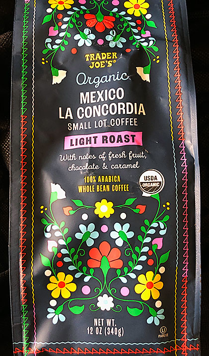 Latest small lot coffee offering from Trader Joe’s. An organic coffee from the La Concordia region in Chiapas. Whole Beans in a Light Roast, and yes it did have some fruity notes with hints of chocolate and caramel as they describe.