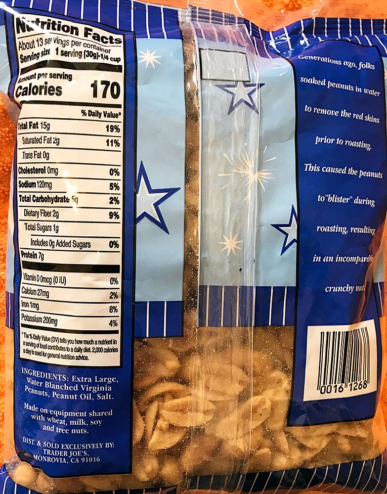 “Old Fashioned Blister” Roasted Peanuts and OMG these are Oh So Good. Maybe these are THE BEST roasted peanuts you ever had. Old Fashioned like ones I remember when we were kids we could go to a real “Nut Store” and buy them just out of the roasting pan. These taste super fresh and are seriously delicious. If you like peanuts you must try these. I promise you will not be sorry, they are just so yummy it’s hard to stop eating them. These are $2.99 a bag (15 oz). INGREDIENTS: Extra Large Water Blanched Virginia Peanuts, Peanut Oil, Salt. Simple and delicious.
