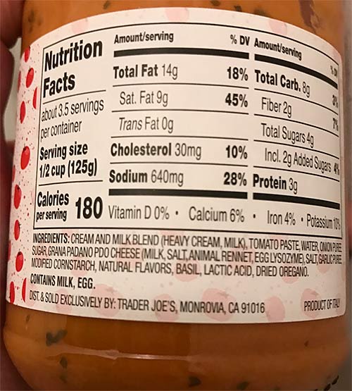When I opened the jar and took a taste, even at room temperature, I could taste that this sauce is real deal Italian. It has a nice balance of ingredients with the tomato, cream and cheese (PDO Grana Padano)