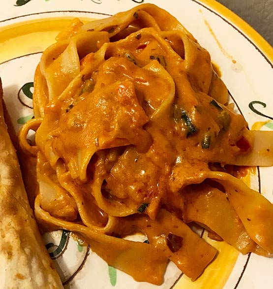 Rosatella sauce with Trader Joe’s Organic Pappardelle noodles