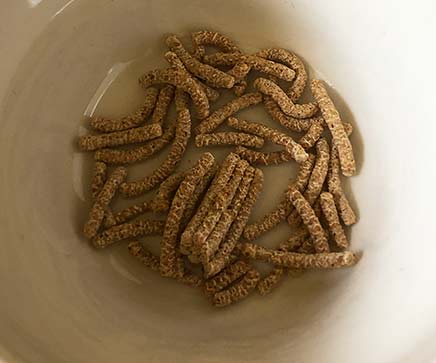 It kind of resembles thin little crunchy bits of brown stuff, clearly extruded, and I assume baked. I am not very familiar with Nabisco’s FIBER ONE cereal but its a little similar. I think the shape of that cereal is thicker that this.