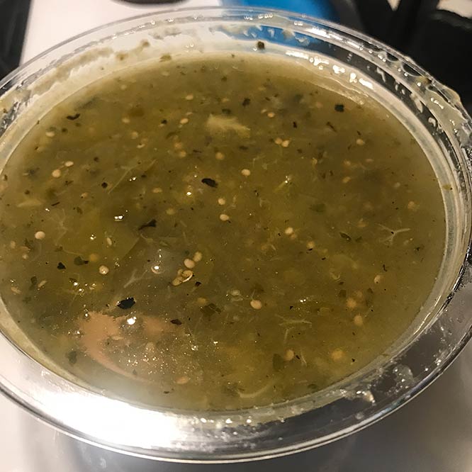 This Salsa Verde also has jalapenos, green chili pureé, roasted red onion, cilantro and cumin in it for a an authentic Mexican flavor.. I liked this salsa. Its not very spicy. I find it somewhere around “Medium” in the heat department so may be good for those who don’t like Really Spicy Stuff but want some great flavors. I tried it on some pork carnitas tacos and it was great with them, bringing out the pork and enhancing it perfectly. Its was also great on eggs, either on top of a fried egg or an omelet or scrambled eggs. This is great on fish, shrimp, beef, pork or chicken. I had some leftover roasted chicken which was a little dry. We just put some of this salsa over the chicken and and Voila, it made the chicken worth eating again. I have a feeling it would even be good with some grilled Tofu or just on top of rice or a protein bowl. This salsa verde goes for $2.99 for a 12 oz tub. I would buy this again.