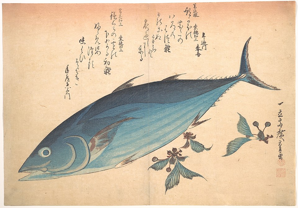 Katsuo Fish with Cherry Buds, print by Hiroshige, 1830