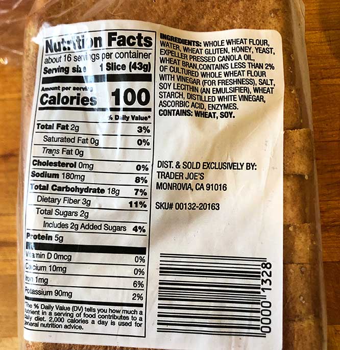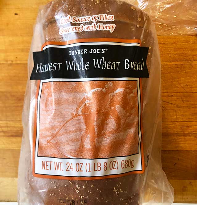 If you are looking for regular sliced bread from Trader Joe’s for sandwiches or what have you, and want to get one that’s whole wheat, this is a yet another nutritious bread option that Trader Joe’s offers. “HARVEST WHOLE WHEAT” is made from whole wheat flour and lightly sweetened with honey. It has a soft crumb and a pleasant, wholesome flavor of whole wheat.