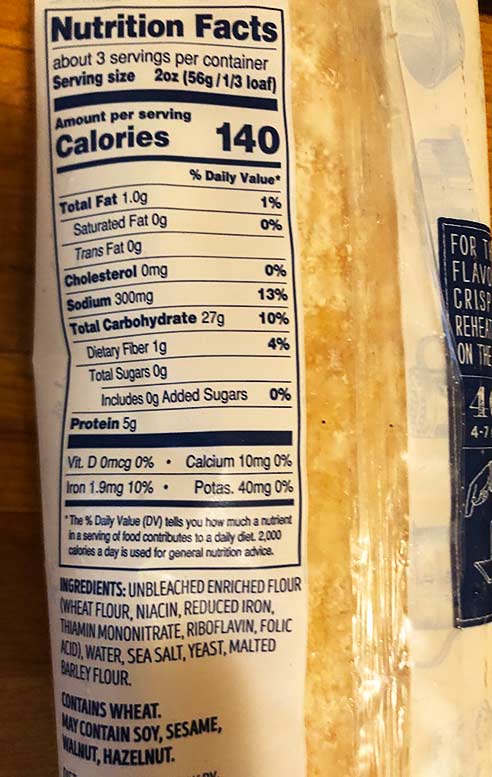 CIABATTA DEMI BAGUETTE – Its a half size “demi” ciabatta bread. We tried it. We loved it. It comes slightly underbaked, to allow for additional baking that you will finish. This will really improve it to almost “freshly baked right out of the oven” status. Just pop it in for about 4-7 minutes in a 400 degree oven.