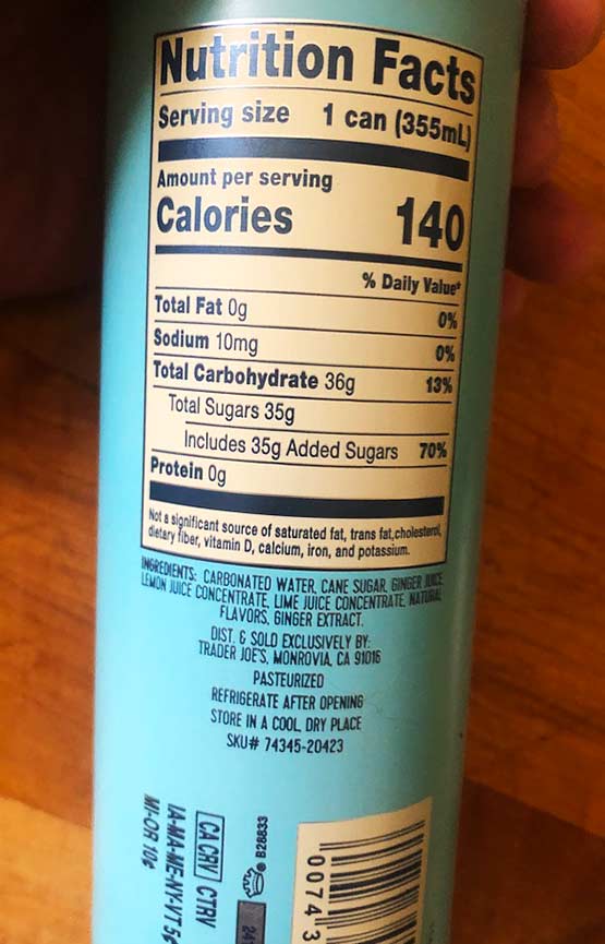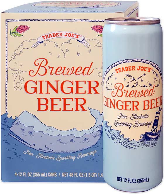 “Made fom a time-tested recipe with ingredients that include water, sugar, ginger juice, lime and lemon juices from concentrate, and ginger extract, our Ginger Beer has a refreshing, gingery bite, and mild carbonation. The addition of lemon and lime juices adds a zesty, citrus zing, and also helps establish the right acidic balance.” -TJ’s