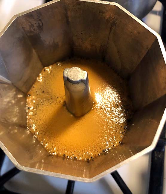 I ground up the beans, which smelled lovely, then brewed the coffee up, as usual, in my Moka pot. The aroma of it brewing smelled great. It even produced some crema too as you can see.