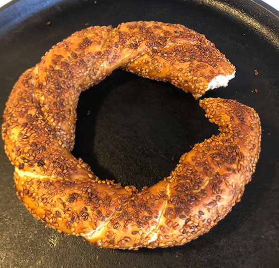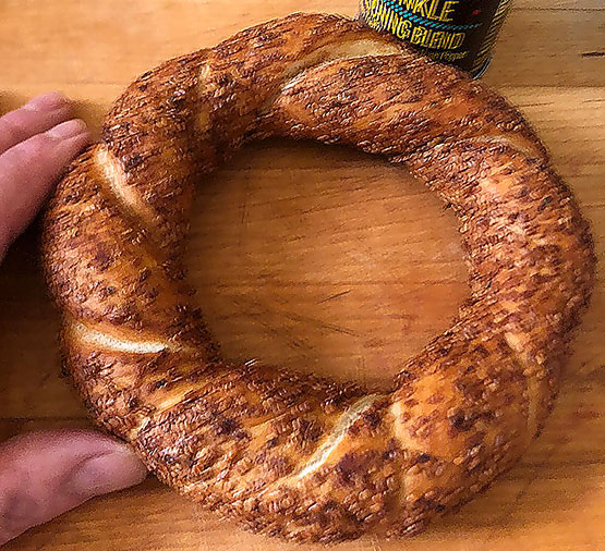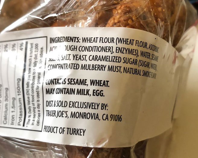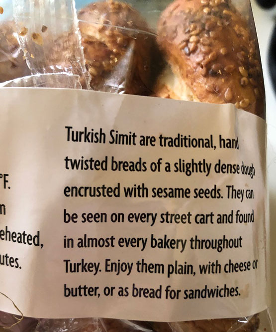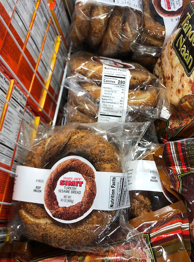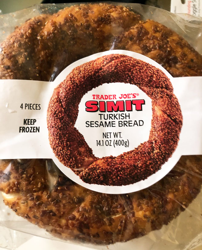 Trader Joe’s says: “For a taste of Turkey at home, allow us to introduce you to Trader Joe’s Simit Turkish Sesame Bread. Simit can be found on street carts and bakeries throughout the country, and although these beauties may resemble bagels, they are distinctly different.