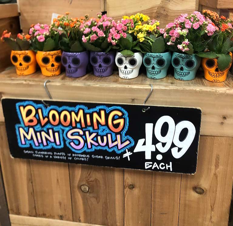 Brighten up your space with these plants for five bucks now at Trader Joe’s (limited) for Halloween (2025) DIA DE LOS MUERTOS – Day of the Dead inspired design.