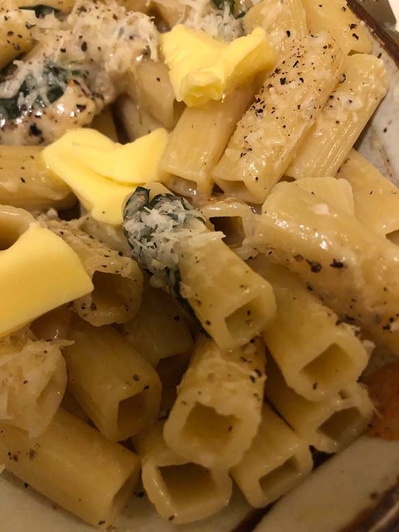 I just made the simplest pasta that day just to test it out quickly just butter and cheese; We liked this pasta quite a bit. Its great and tasty of course as I’ve found all of the artisan pastas from Italy the sell are (these are all high end pastas, organic durum semolina, bronze die cut….) But ideally this shape will excel and be perfect for a heartier sauce, especially something like a Bolognese or ragu, meat sauce as they suggest, or a baked pasta. Greek Pastitsio anyone?