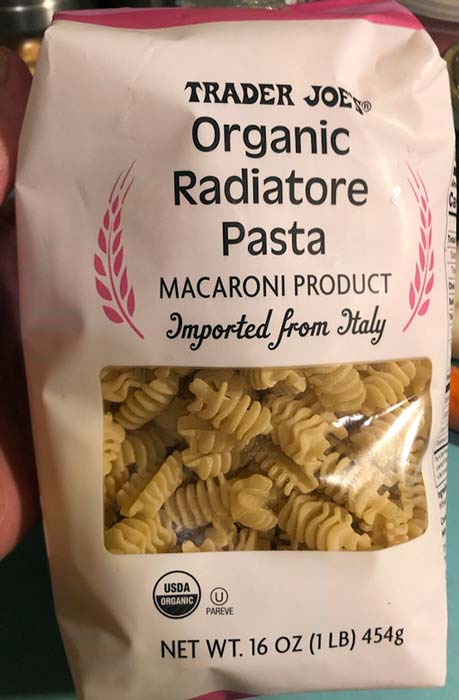 Trader Joe’s ORGANIC RADIATORE pasta is a relatively new addition to the pasta shelves there. They were introduced along with the square rigatoni pasta, which I also gave a great review.
