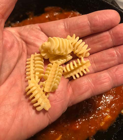 The shape has all those nooks and crannies which are perfect for taking in and holding a lot of sauce. By the way, did you know the Italian government recognizes about 300 different pasta shapes?