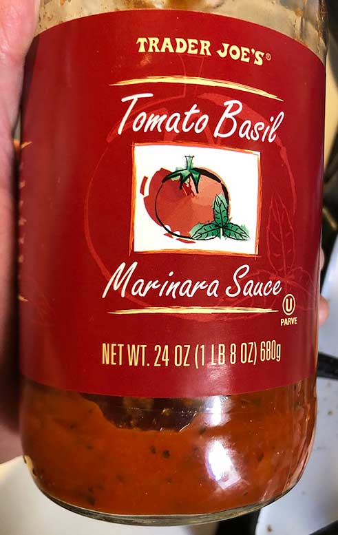 Even if you do nothing, this is a very tasty versatile sauce which can not only be used for pasta but for making dishes. “Use it as a simmer sauce for chicken breasts or meatballs. Or, let it be the starting point for your own sauce-creation. So many different ways to enjoy this enduring sauce.” https://www.traderjoes.com/home/products/pdp/tomato-basil-marinara-sauce-045029