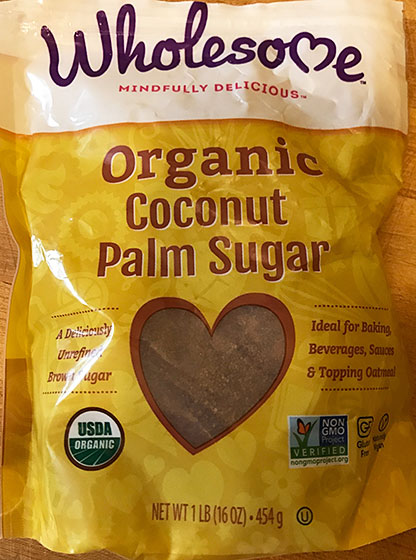 (UPDATED) This brand “Wholesome” organic coconut palm sugar has has now been replaced by Trader Joe’s own brand, “Trader Joe’s Organic Coconut Sugar”.