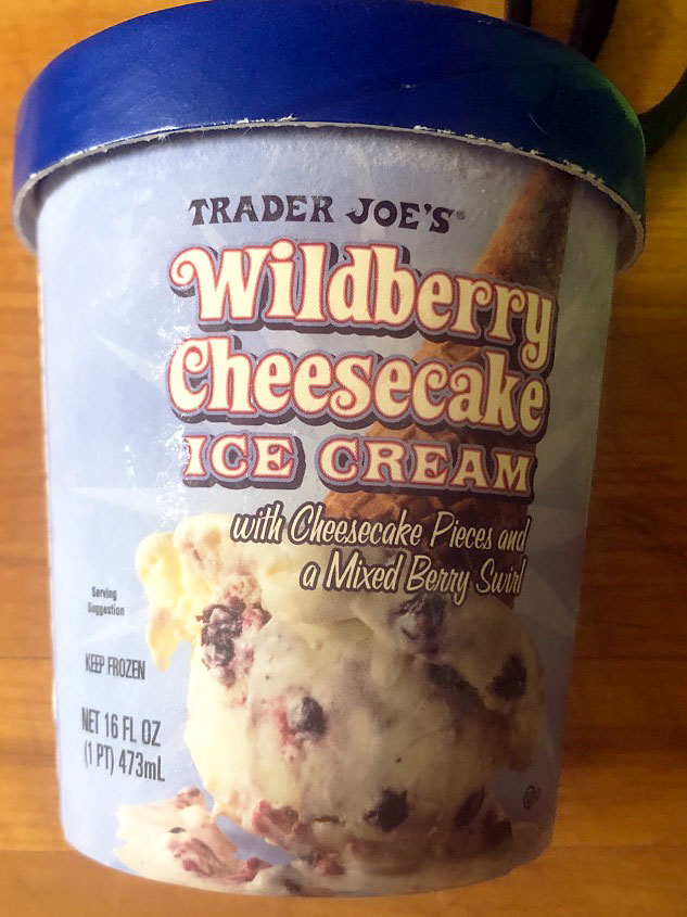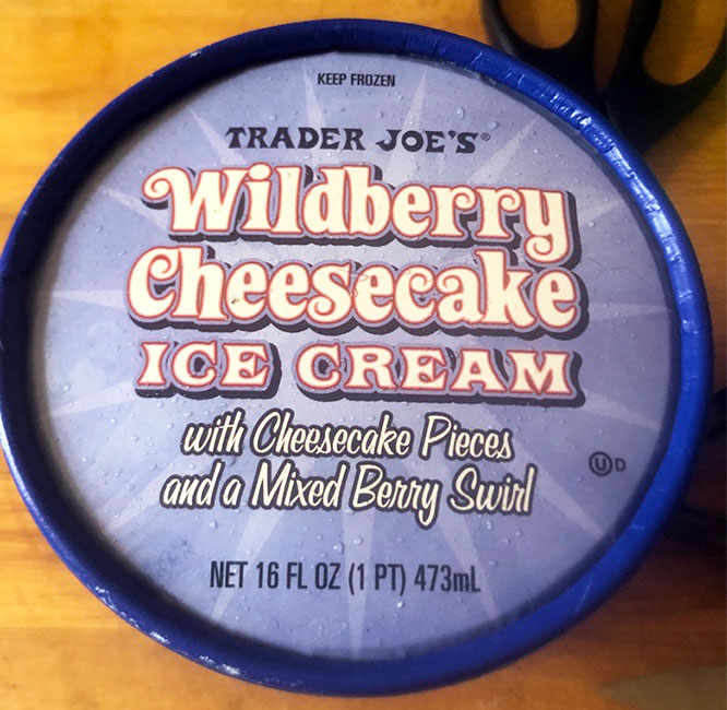 “To herald the coming of summer, we’re offering Wildberry Cheesecake Ice Cream, featuring the vibrance of wild berries and bits of cheesecake. That’s right: in addition to a dreamy, sweet-cream ice cream base, you’ll find a generous mixed berry swirl (made with blueberries, elderberry juice concentrate, and a blend of raspberry, strawberry & blackberry purees) and tender bits of classic cheesecake.” – Trader Joe’s