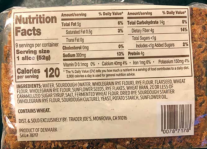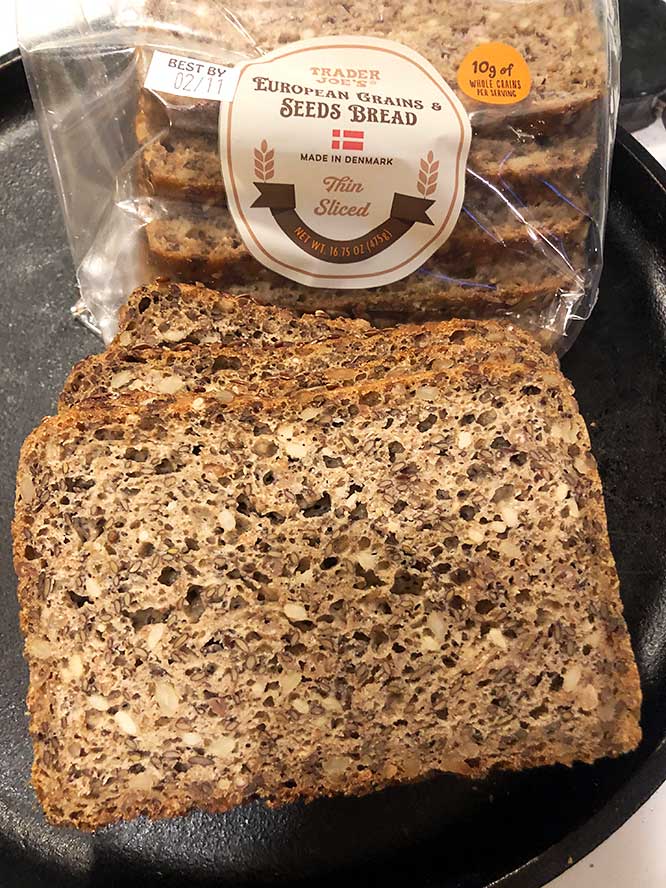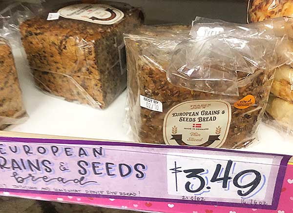 Yes, this bread is good. Trader Joe’s new “European Grains And Seeds Bread” is deliciously nutty, tasty and full of seeds. It is baked for for them in Denmark by a Danish bakery, with the thin slices have a nice, nutty taste from sourdoughwholegrain rye and whole wheat floursplus a lot of seeds.