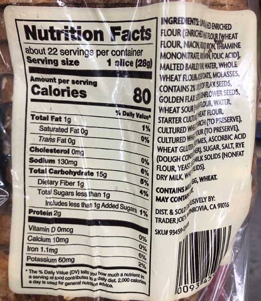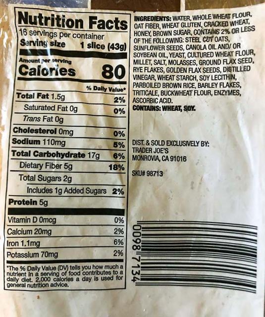 So healthy. I am going to guess this is probably the healthiest bread you can buy at Trader Joe’s.