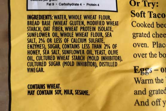 The ingredient list has few ingredients and no preservatives. ING: Flour, water, sea salt, yeast.