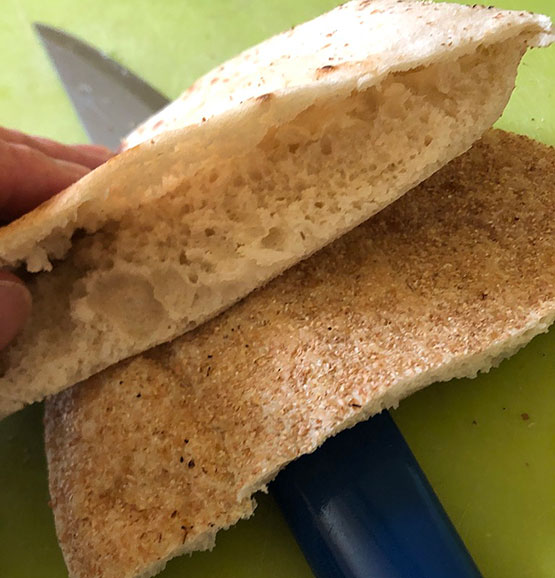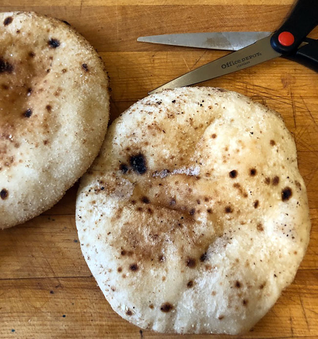 I really love good pita bread. The fresh “pita bread original pockets” at Trader Joe’s have been OK in a pinch but its far from what I would call good pita (not too mention they used to give you 6 and now its just 4! Shrinkflation in action)