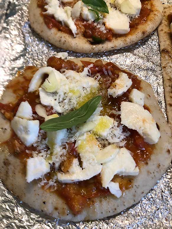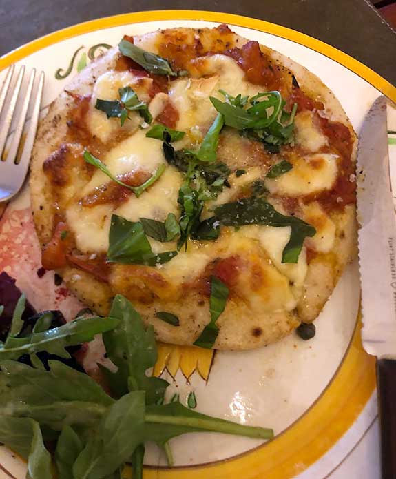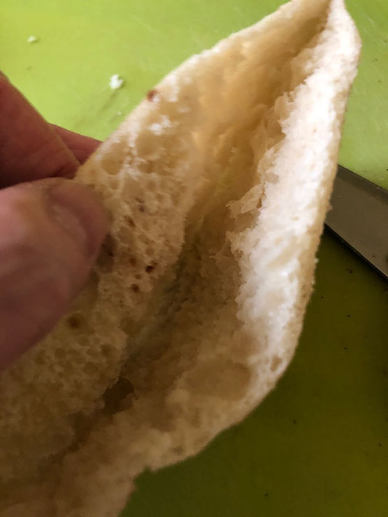 PS – I did try them for the base for pizza. Came out quite tasty! I’d say it kind of worked for a pizza base, if you are OK with the knife and fork kind of pizza. Next time I may split one open and just use the half for a thinner base, and see if I can get more of a bake on the bottom and get it more crisped up. Worth trying for easy pizza.