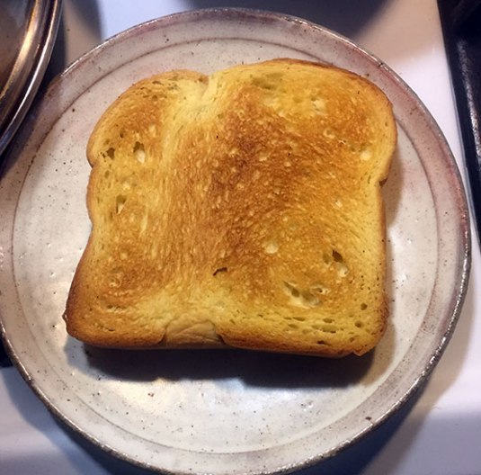 BREAKFAST TOAST: I toasted this up till golden brown and it made a great slice of toast. I spread it simply with some good butter and a little jam, and really enjoyed this toasted. It makes fabulous toast.
