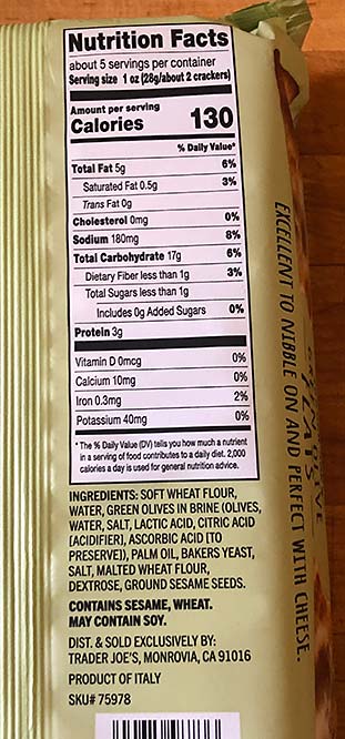 Trader Joe’s new GREEN OLIVE FLATS Italian Lingue Crackers.