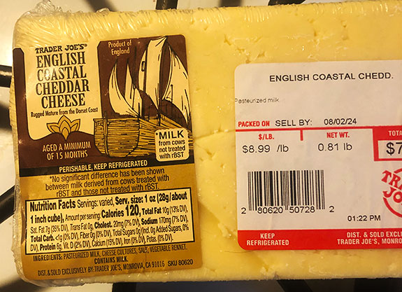 This is a think a fairly recent addition… ENGLISH COASTAL CHEDDAR which comes from Dorset, located on England’s Southern coast. How is these one? Great. I add this English cheddar to the list of EXCELLENT CHEDDAR cheese at Trader Joe’s.
