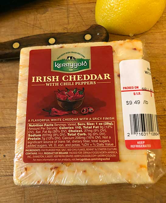 I think this cheese is SEASONAL for the time around Saint Patrick’s Day? So, Limited Supply. If you see it, grab it while you can. All I know is once I start I find it hard to stop eating this cheese. For me, its almost a bit addictive….in a good way! Is this too spicy for the Irish though I wonder?