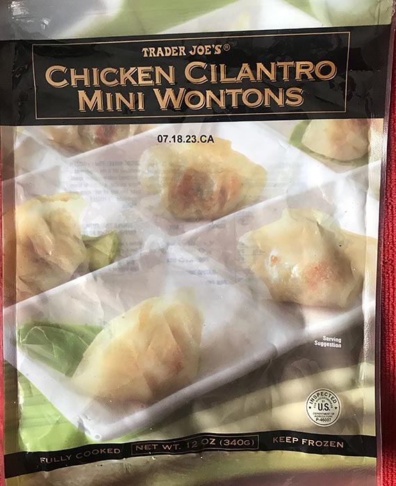 You could easily describe me as a dumpling fanatic. I’m fortunate to live in a city (NYC) with a huge Asian population and can get really excellent dumplings, such as at “Vanessa’s Dumpling House” to name just one place. So having said that, I can’t say these Trader Joe’s frozen mini wontons can compare to some handmade chicken and basil dumplings like I could get at a dumpling place like Vanessa’s, or Shiu Jiao Fu Zhou dumpling house. Stil these are kind of decent little wontons, and they are certainly convenient. So if you can’t go buy a big bag of frozen dumplings from Vanessa‘s or another Chinese dumpling maker as I do on occasion, these may be the next best thing. They seem popular. I usually will see a few people grabbing a bag at Trader Joe’s. On the web, I know there is some hack with these dumplings cooked in TJ’s Miso Ginger broth, which I tried and is pretty good (for me the broth needs more miso and way more ginger!) These are mini wontons so are smaller than regular size wontons or dumplings. These are just one bite each. They’re good made by either boiling or pan frying them. If you are doing them boiled, I like them served in a soup – a strong chicken broth (preferably homemade) or possibly one of Trader Joe’s broths or the Ginger Miso Broth (add more miso if you have that and some fresh grated ginger) They are good also cooked up as pan fried wontons. These will taste much better with a good dumping sauce. For me, that is mandatory. Also the cilantro flavor in the dumplings is very weak so buy some fresh cilantro and add some just before serving. Some people hate the cilantro’s flavor but I love it and it’s a very essential Asian taste. These Mini Wontons are $3.49 for a package (12 oz). I would buy these again.