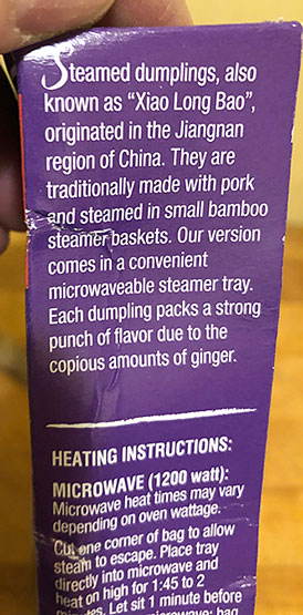 OK, they are decent as long as I really just think of them as another kind of dumpling and not specifically “soup dumplings” aka “xiao long bao” or XLB, those prized jewels of the Chinese dumpling art. I am a huge fan, a devotee of XLB. Any good xiao long bao as I previously mentioned in that other review about TJ’s Pork Soup Dumplings.